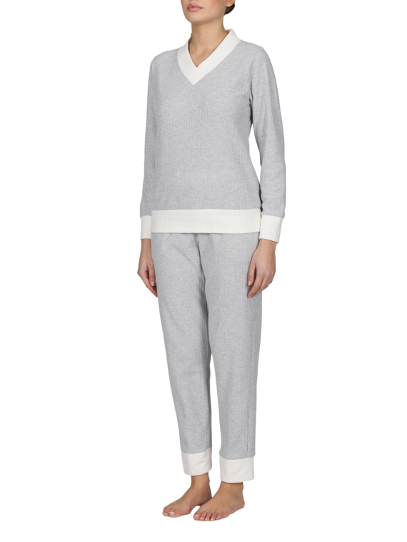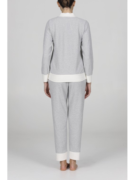 SCOLLO A V BORDO COLLO E POLSINI A CONTRASTO TESSUTO SCARTO...