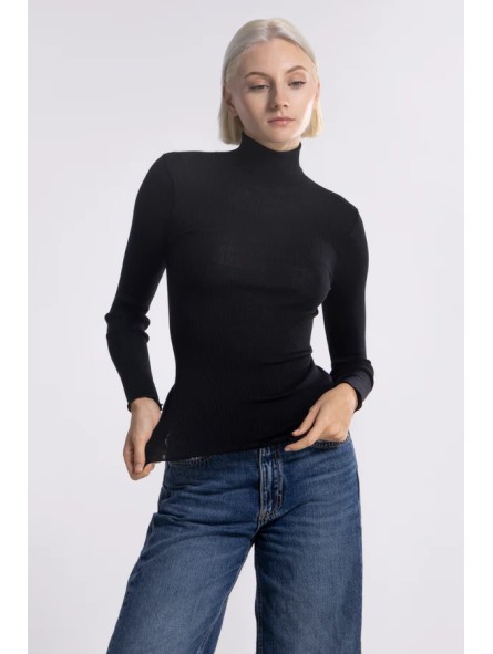 Lupetto maniche lunghe realizzato in una preziosa e naturale miscela intima di lana Merino extrafine e pura seta di prima qualità.