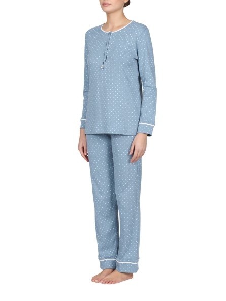Boglietti donna FEL378 DELIZIA Pigiama Serafino a pois in caldo interlock