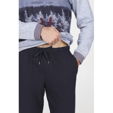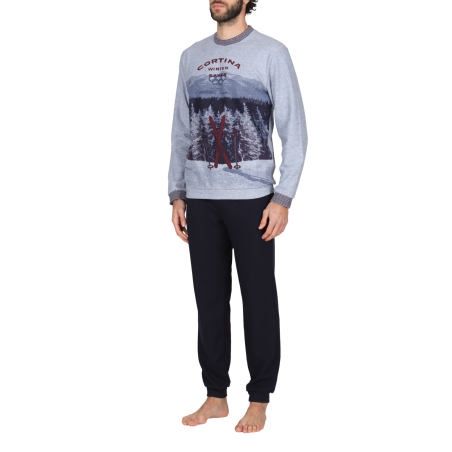 Pigiama uomo in jacquard Ecolife di misto cotone: caldo, elegante e pratico è adatto sia per la notte che al vestire in casa per un massimo comfort. Maglia girocollo con stampa piazzata ispirata ai giochi olimpici invernali Cortina 2026, da cui prende origine l'Artist Edition. Bordure e polsini a contrasto in nuance e dettaglio stemma. Un design ricercato, ideale per l’uomo che ama distinguersi anche a casa.