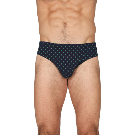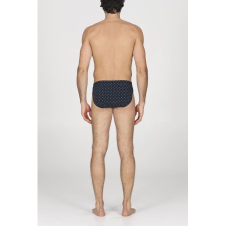 Slip uomo in jersey di cotone bielastico blu, con disegno racchette da tennis. Pannello posteriore senza cuciture, elastico coperto. Massimo comfort e dinamismo. Per chi è alla ricerca di un prodotto elasticizzato di qualità, moderno e con una bassa percentuale di elastan.