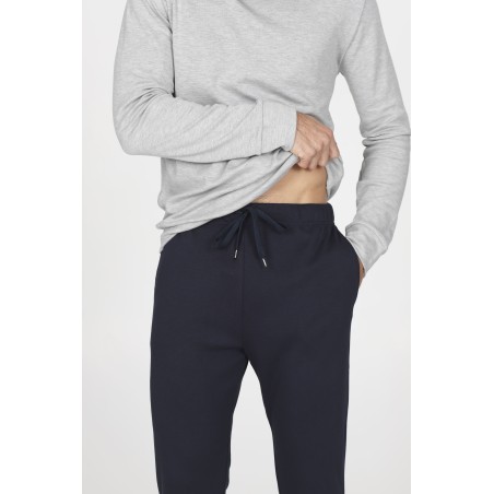 Tuta in morbido interlock di micromodal e cotone, il mix in perfetto equilibrio: cotone fresco, resistente e modal super confortevole. Maglia girocollo. Pantalone con tasche sui fianchi e coulisse.